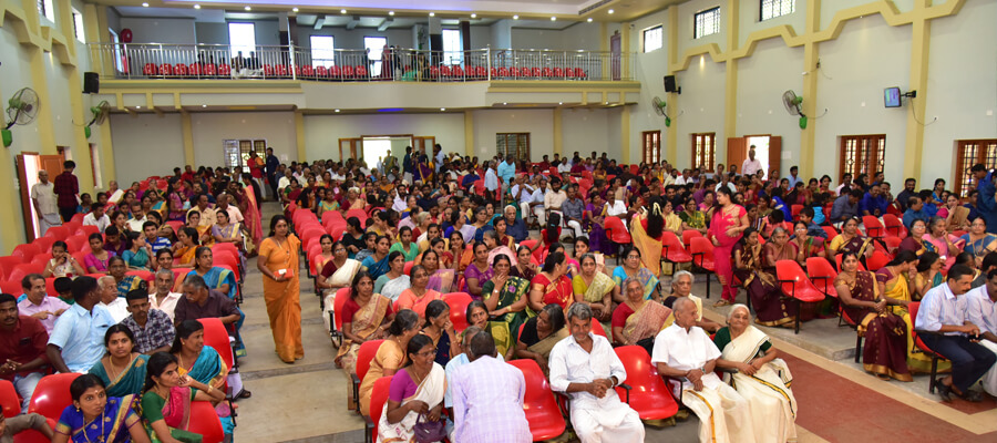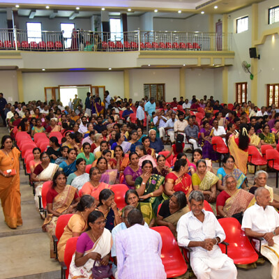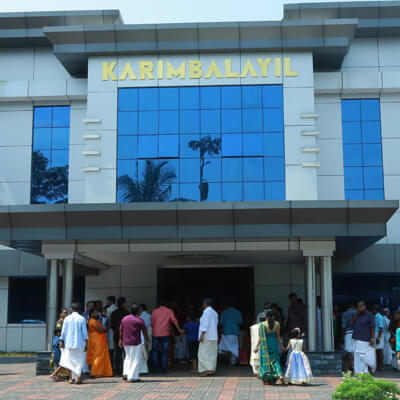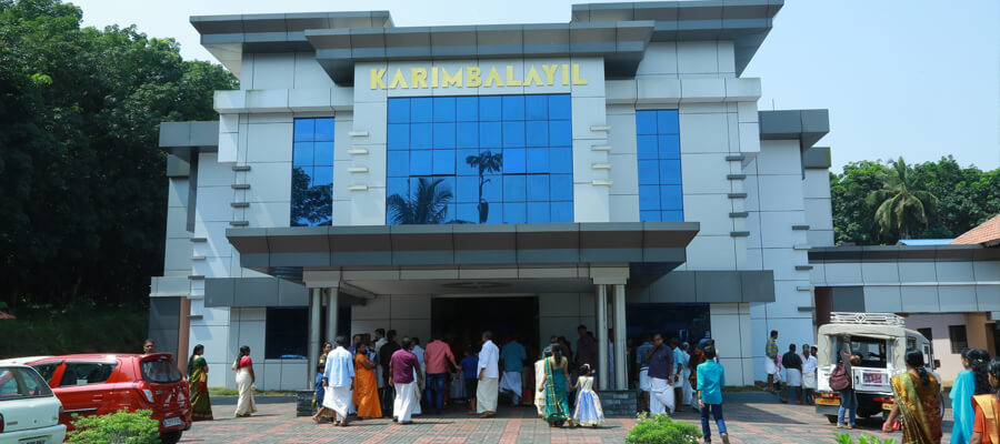 Karimbalayil Auditorium, has a wide built up area of about 10,000 sq. feet with an overall seating capacity of more than 1000 people. The capacity of the dining hall at one time can occupy 600 people (Men and Women Separately).